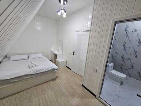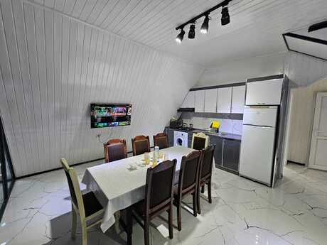 Qebele Rayon özünde, Dağ mənzerli 4 yataq otagi olan 11 neferik tam yataq 5 hamam ws, (3 ededi yataq otağinin içinde, zalda biri heyetde) Tv Android. Wifi optik, Her otaqda kondisoner. Üstü bambo döşəkli yumuşak yatacaqlar Umumi her yataq otaginda yatacaq növü 1 taxt ve 1 tekdir. Istilik sitemi istipoldur Isti Hovuzdur. Heyetde besteka, yellencek , mangal simovar Ve metbexinde lazim olan herbir avadanliq. Stekan qab qasiq vardir. Etrafli info üçün zeng edebilersiz.