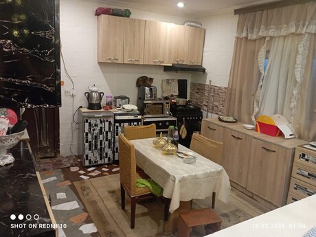Salam ev sahibiyəm. Həyətdə su işıq qaz daimi internetde var. Ev 150 kv. Ev Torpağ qarşı 2 sotdu sənətdə. Amma 2 sotdan artıqdı. Evin içərisində gördüyünüz mebeler və əşyalar bəziləri qalacaq əsas mətbəx mebeller qalacaq. Yaşayış üçün normaldı. Gördüyünüz ev budu. Son qiymətdi. Makler deyil evin sahibiyəm. Evin sənətləri qaydasındadır. Alan adam özü üçün kupça çıxarda bilər. Həyətdə əl damı var kirayədə verilə bilər. Yalnız vatsapla əlaqə saxlayın. Birbaşa vatsaplada zəng edə bilərsiz!