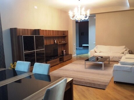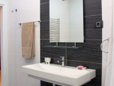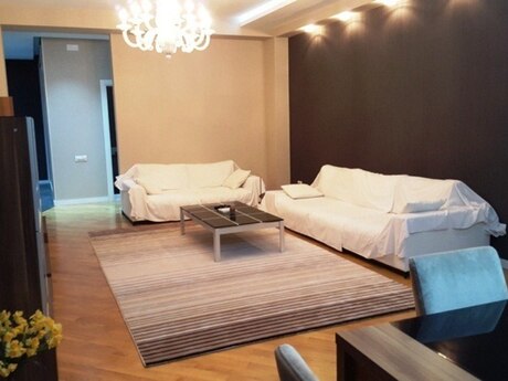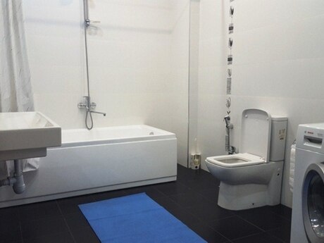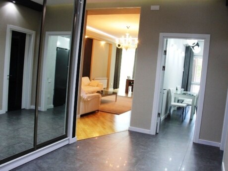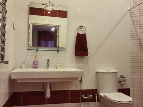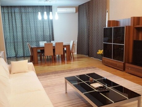 Сдается в аренду уютная 4-комнатная квартира по улице Рашида Бехбутова около Аквапарка. Площадью 200 кв. с дорогим ремонтом в стиле модерн, 3 спальные комнаты, 2 санузла, джакузи и душевая. Кухня встроенная и оборудована полностью, имеется стиральная и посудомоечная машина. Индивидуальная система отопления. Комнаты очень светлые и просторные. Квартира оснащена панорамными окнами и большим балконом площадью 17 квадратных метров. Полы с подогревом. Очень удобная планировка. Рядом с домом находится спортивно оздоровительный комплекс «Аква Парк» вмещающей в себе тренажёрный зал, ресторан, сауну, бассейн, салон красоты и большой супермаркет работающий круглосуточно. Здание охраняется 24 часа в сутки. Квартира находится в 5 минутах ходьбы от делового центра столицы. Цена аренды 2500 манат в месяц. Квартира также сдаётся посуточно 150 манат за сутки. A comfortable 4-room apartment with total area of 200 square meters is available for renting near the Aquapark on Rashid Behbutov Street. 3 bedrooms, 2 bathrooms with Jacuzzi and a shower with expensive repair in modern style. The kitchen is built-in and fully equipped. Washing machine and dishwasher. Individual heating system. The rooms are very light and wide. The apartment is with panoramic windows and a large balcony of 17 square meters. Heated floors. Very comfortable layout. There is the sports complex "Aqua Park" near the house, which includes a gym, a restaurant, a sauna, a swimming pool, a beauty salon and a large supermarket that operates 24 hours a day. The building is guarded 24 hours a day. The apartment is located 5 minutes’ walk from the business center of the capital. The rental price is 2500 manat per month. The apartment is also rented on a daily basis 150 manat per day.