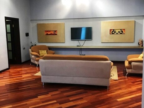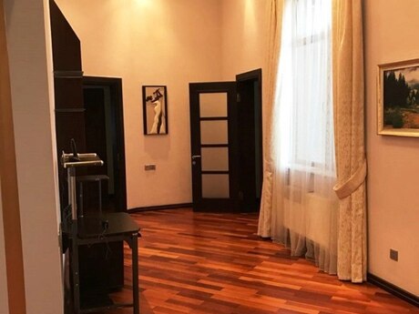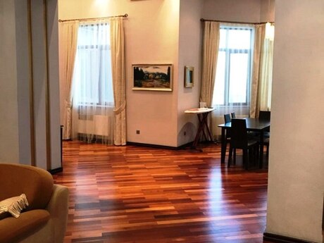 Фирмам и Посредникам Не Звонить !!! В центре города на улице Алиярбекова , около площади фонтанов . Архитектурный дом . Широкие стены . Высокий потолок . Есть лифт . Пол - паркет . Теплая и светлая квартира . Отопление - Kombi .