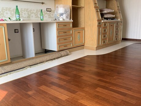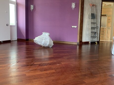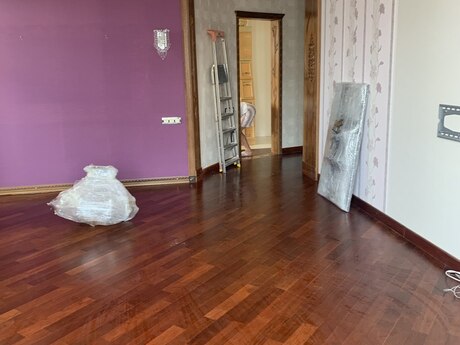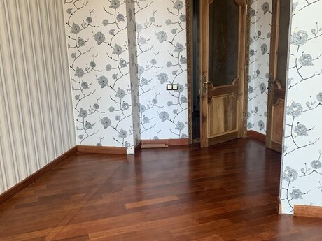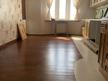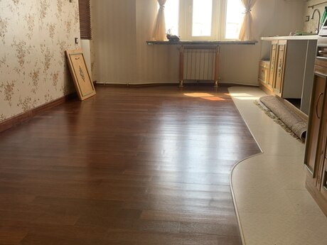 3 otaqli temirli menzil.Parket qirmizi agacdan,qapilar qoz agacindan,metbex mebeli göyuş agacindan yigilib.2 sanuzel,3 eded kond. var.Yataq otaqlar iç-içe oldugu ucun bu qiymete verilir.Qiymet pod mayak qiymetine temirli menzil. Menzil qanuni 3 otaqdir.Sadece dizaynla uwaq yataq otagini qarderob otagi edilmiwdir.