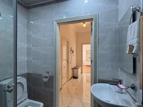 Kristal Abşeronun Park Xırdalan Layihəsi, Bina 26 (MANQAL'da Restoranının binası)! Bina yenidir, 2023-cü ildə istifadəyə verilib. Qanuni 2 otaq, gözəl görünüşlü, işıqlı, səs-küydən uzaq mərtəbə (bu binalarda 1-dən 5-ci mərtəbəyə qədər mənzillərin qiyməti daha ucuzdur), orta (künc deyil), çox səliqəli və yeni mənzil, otaqların və mətbəxin pəncərəsi binanın ön hissəsinə-həyətə baxır, plastiklə bağlanmış balkon. Tam yeni mebellə təchiz olunmuş (qonaq, yataq, mətbəx, dəhliz (dolab yığılıb), tam yeni əşyalı (qara rəngli no frost soyuducu, paltaryuyan, qabyuyan, quraşdırılan soba, kondisioner, TV (hamısı yeni quraşdırılıb, zəmanərlidir)), yeni çılçıraqlar, WİFİ, kombi və s. Tam təmirli (yeri parket, hamam otağı və dəhliz isti pol), 24 saat mühafizə xidməti, domofon sistemi, geniş parklı həyəti, yerüstü və yeraltı qarajı, sürətli 2 lifti ( sərnişin və yük üçün), mərkəzdə bütün infrastruktura yaxın (dayanacaq və parkın yanında, bağça və məktəbin yaxınlığında). Onu da qeyd edim ki, mənzilin qapıları və dəhlizin metlaxı digər mənzillərdən fərqlidir və zövqə uyğun alınıb, təmir olunub. Öz mənzilimizdir, çıxarış (kupça) adımızadır, mənzil şəkillərdə görünən bütün əşyalarla (elektronika daxil) birgə satılır. Real alıcıya mənzilə baxdıqdan sonra ağılabatan endirim olunacaq inşəAllah.