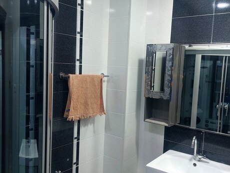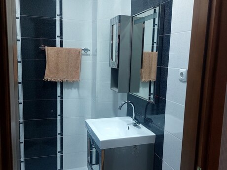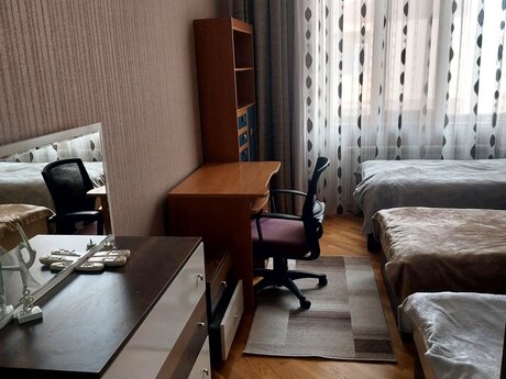 Zabitder baği ile üzbəüź 18 mertebeli evin 12 ci mertebesinde yerleşir.Menzil Ela temirli,Eşyalarla biryerde satilir, Pol parket Qapilari Fisdiqdan su,qaz,isiq daimidir.Her bir şerait var 3 otaq 178 kv.m ve 2 sanuzelli mövcuddur Qiymetde Yaxsi Endirim olacaq