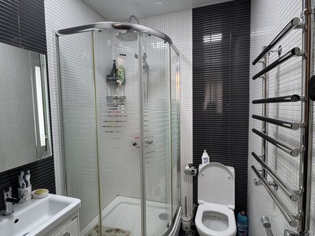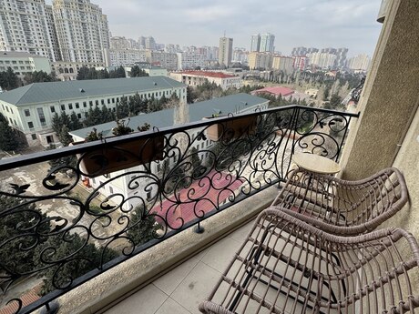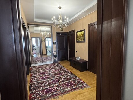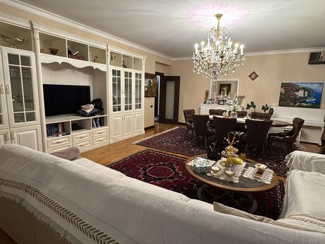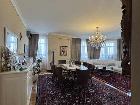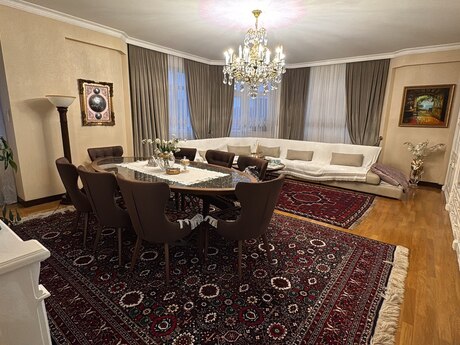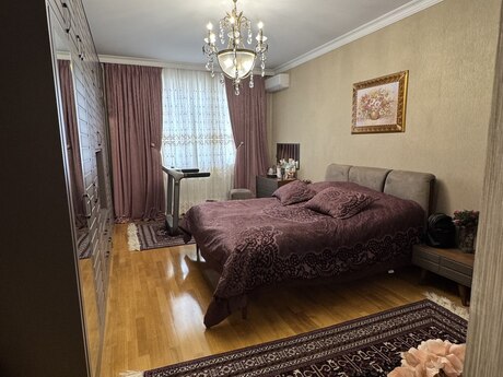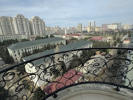 Elmlər Akademiyası metrosu və Nizamı metrosuna yaxın,Dövlət Statistika Komitəsi və Olimp istiqamətində təzə tikili, çox keyfiyyətli inşa edilmiş,iki lifti,24 saat mühafizə sistemi və əlverişli infrastrukturda yerləşən binada mənzil satışdadır.Mənzil 18/10 mərtəbə,bahalı təmirli, bəzi əşyalar saxlanılmaqla və evdə divara quraşdırılan bütün bahalı texnika sistemi qalmaq şərtilə satılır.Üç otaqlıdır,145kv/m,bir geniş zalı(tək zalın sahəsi 47 kv/m-dir),iki yataq otağı,mətbəxi,kladovkası,koridoru və iki hamamı-sanuzeli olan,iki balkonlu,tam təhlükəsizlik sistemi(kamera-siqnalizasiya sistemi) quraşdırılmış mənzildir.Bundan əlavə 2 maşınlıq 35 kv/m olan qarajıda var.Satıcı bir başa özüməm,vasitəçilər narahat etməsin.