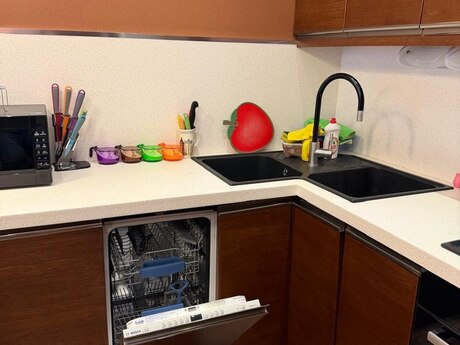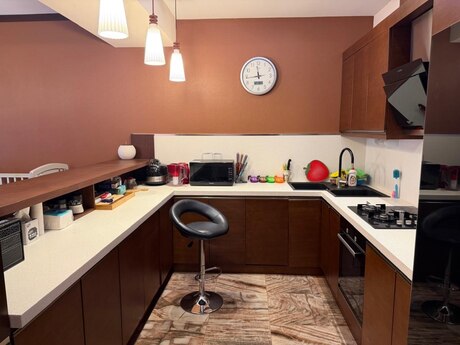 Həqiqətən unikal bir yaşayış məkanına daxil olun – burada düşünülmüş dizayn Avropa keyfiyyəti ilə birləşir. Bu geniş 2 otaqlı mənzil əvvəl 3 otaqlı olub və müasir həyat tərzinə uyğun olaraq açıq planlı, studio üslublu böyük qonaq otağına çevrilib – həm gündəlik rahatlıq, həm də qonaq qəbul etmək üçün ideal seçimdir. Mənzilin əsas hissəsi geniş və işıqlı qonaq otağıdır; o, müasir və zövqlü mətbəxlə birləşərək nadir rast gəlinən açıq və lüks atmosfer yaradır. Hər detal diqqətlə seçilib – tikintidə Almaniya, İspaniya və İtaliyadan gətirilmiş yüksək keyfiyyətli materiallardan istifadə olunub ki, bu da həm estetik görünüş, həm də uzunömürlülük təmin edir. Bütün mənzil boyu uzanan gözəl qırmızı ağac (redwood) döşəmələr məkana istilik və zəriflik qatır. Giriş hissəsində, mətbəxdə və hamam otaqlarında quraşdırılmış isti döşəmə sistemi isə xüsusilə qış aylarında maksimum komfort təmin edir. Mənzildə yüksək səviyyəli materiallarla işlənmiş iki müasir hamam otağı mövcuddur və onlar həm funksionallığı, həm də dizaynı mükəmməl şəkildə birləşdirir. Geniş planlaşdırması, premium materialları və incə Avropa üslubu ilə bu mənzil lüks, rahatlıq və müasir dizaynın ideal harmoniyasını təqdim edir. Keyfiyyətə, genişliyə və fərqli yaşayış təcrübəsinə dəyər verənlər üçün mükəmməl seçimdir.