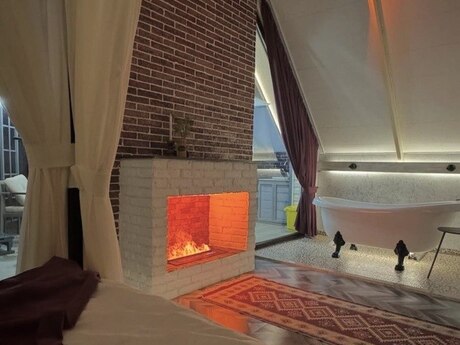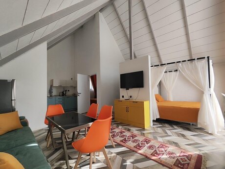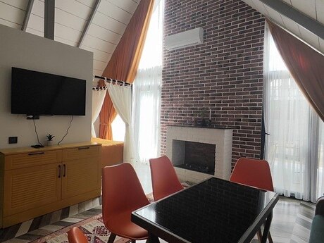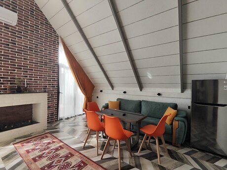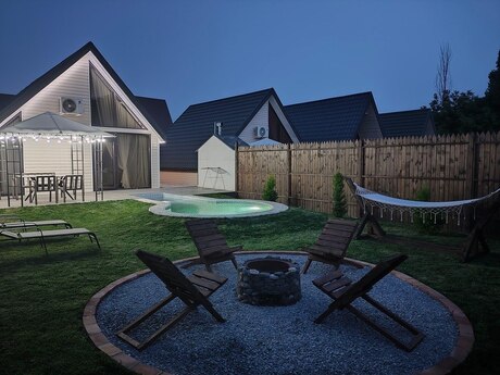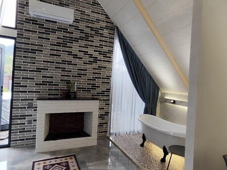 Qəbələ şəhəri vəndam qəsəbəsində yeni istifadəyə verilmiş A Frame evimizi sizlərə təqdim edirəm. Evdə : İsti Jaccuzi , Rus Vannası , Kamin , Ocaqlıq , Yellənçəklər , Besetka , TV ( netflix ) Və s. 2 yataq otaqı 4 6 Nəfərlik Manqal,Samovar,Sac,Sis,setka. Qab qacaq ve s. Evvelceden elaqe saxlamagınız xahish olunur.