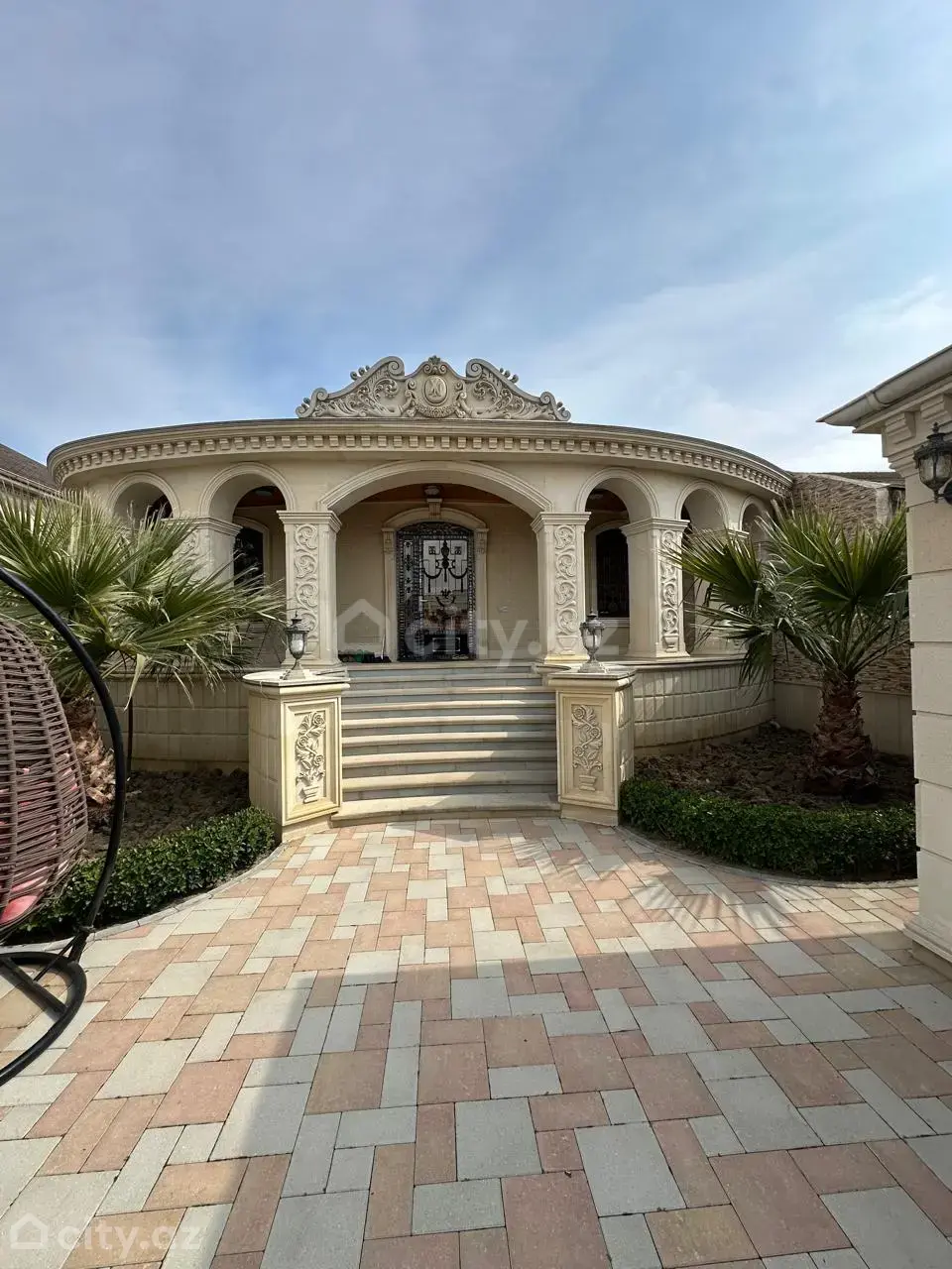 Villanın həyətində — Pultla idarə olunan jaluz qapı , sanitar qovşağı , vanna otağı + duş kabini , saxlanc otağı , yay’qış mətbəxtdi , manqal’ni , söhbətgah , daşma şəlalə… bir sözlə əsil bağ evi…Həyət tamet daşlarla döşənilib… Villanın üst dekorasiyası və həyətin hasarları təbii daşlarla , yüksək keyfiyyət və incəliklə işlənib…..