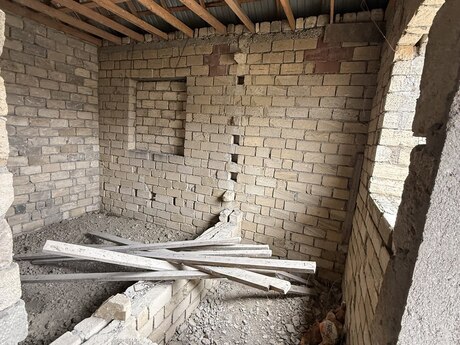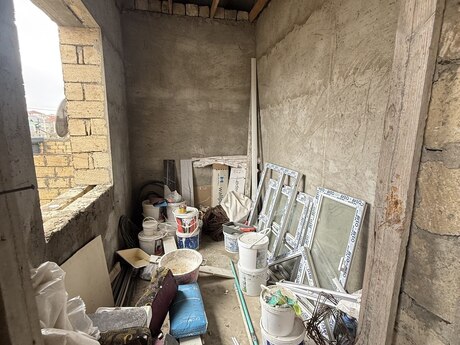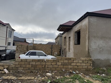 Salam . 4.5 sotun içinde yarı tikili (qaba inşaat) otaq sayı 4 üstü vurulub . Heyetinde birçox meyve ağacları mövcuddur . Esas yola maşrut xettine 910 metr mesafede yerleşir. Torpağın senedi mövcuddur . Real alıcıya endirim olunacaq