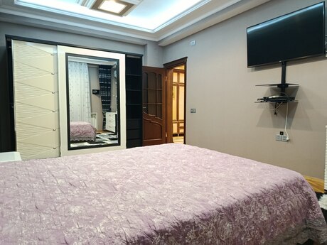 Mənzil əşyalı satılır, su,qaz,işıq daimidir,hər bir otaq kondisioner, televizor ilə təchiz olunub.