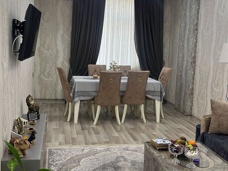 Ev saray MTK da yerlesır. Sexsı evımdır,vasıtecı deyılem. Öz sexsı yasamağım ucun yüksek sevıyyede babalı materıallarla temır olunub. Hamam tualet methed ve dehlız üstü polla temın olunub. Evın hal hazırda hec bır temıre ehtıyacı yoxdur. Proyektı cox yaxsı proyektdır, künc menzıl deyıl. Damafon ves ıle temın olunub,ıstılık sıstemı kombıdır. Sened kupadır. Elektron avadanlıqlar (Tv ve s) dan başka bütün eşyaları razıların saxlamaq olar. Ciddi alicilarla qiymetde razilasmaq olar.