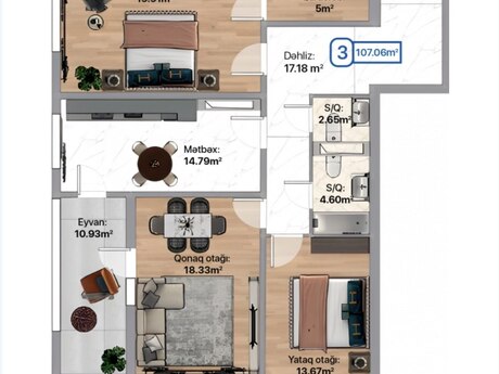 Xirdalan, Xəsən Əliyev küç. 7A, Blue City yaşayiş kompleksin 1D binasinda 15/10 mərtəbəsində ümumi sahəsi 107 kv olan tam təmirli 3 otağli mənzil satilir! Təmirdən təzə cixib! Keyfiyyətli materiallarla yiğilib! Su, işıx, qaz, internet, kombi, radiatorlar, sanitar qovşaği tam yiğilib! Giriş, sanitar qovşaği, balkon, mətbəx isti pol! Mebel al gir yaşa! SAHİBKARAM! Endirim var!
