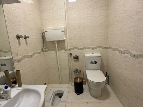 Ev çox gözəl infrastruktura malik olan,metroya (3-5 dəq) yaxın ərazidə yerləşir. Həyətdə 24 saat mühafizə xidməti var. Mərtəbədə 2 ev var.Evin həm həyətə,həm də şəhərə baxan 2 eyvanı var. Eyvanlara qapalı pəncərələr qoyulub.Təmiri ortadır. Döşəməsi parket, qapıları və evdə yığılan dolablar keyfiyətli təxtadandir.