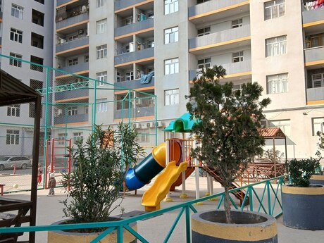 Salam.Ev masazlrda esas yolun duz kenarlnda yerleşir.Ev temirlidir.Evde hec vaxt yaşaylş olmaylb.Her bir komunal xidmeti var. Iki lifti,yeraltl qarajl,heyetinde cicikde olsa istirahet etmek ucun ve usaqlarln oynamasl ucun yeri var. Etrafda mekteb,usaq baxcasl,masazlr poliknikasl,marketler ve diger allş-veriş mekanlarl var.Evin senedi müqaviledir,ve evin alql-satqlslnda ödenilegek mebleǧi her iki teref ödeyegek hem satan hemde alan.Ev öz evimdir maklerlede ișlemirem.